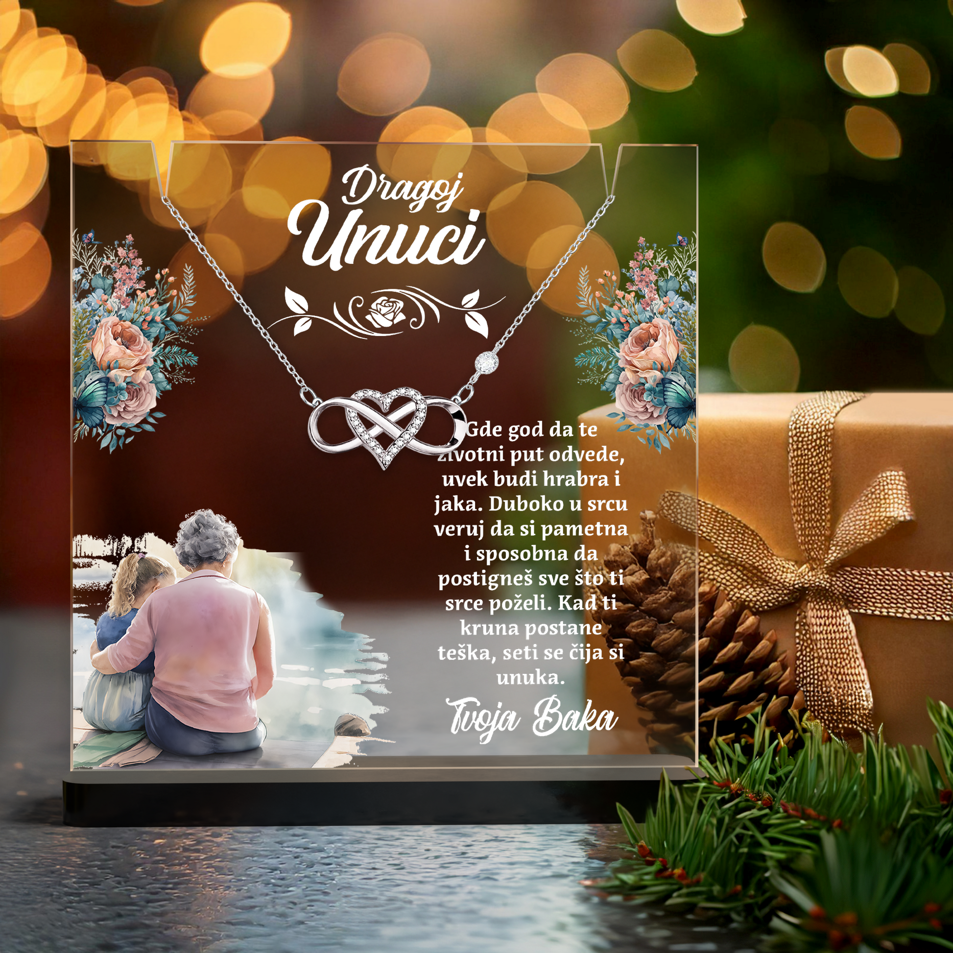 Od bake za unuku - Akrilna posveta sa Infiniti Srcem